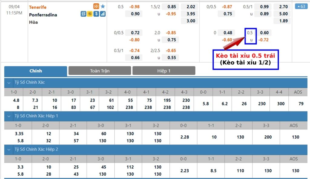 Trên/ Hòa/ Dưới, Tài Lẻ/ Xỉu Lẻ/ Tài Chẵn/ Xỉu Chẵn