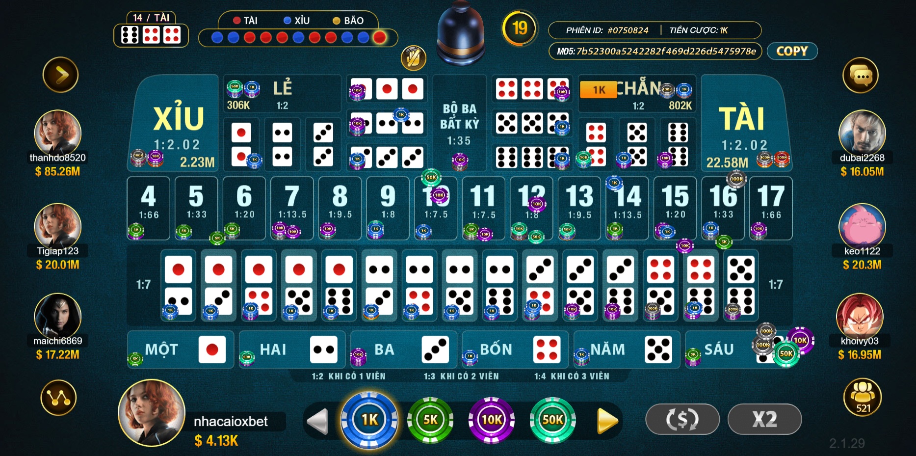 Cách chơi của Tài Xỉu Sảnh Rồng cũng giống như các game Tài Xỉu thông thường nhưng tại nhà cái Oxbet thì bạn sẽ có nhiều lựa chọn hơn. Nếu như các nhà cái khác chỉ có 2 lựa chọn là Tài hoặc Xỉu thì ở đây bạn có thể chọn rất nhiều những mức cược thú vị khác để gia tăng tiền thưởng.