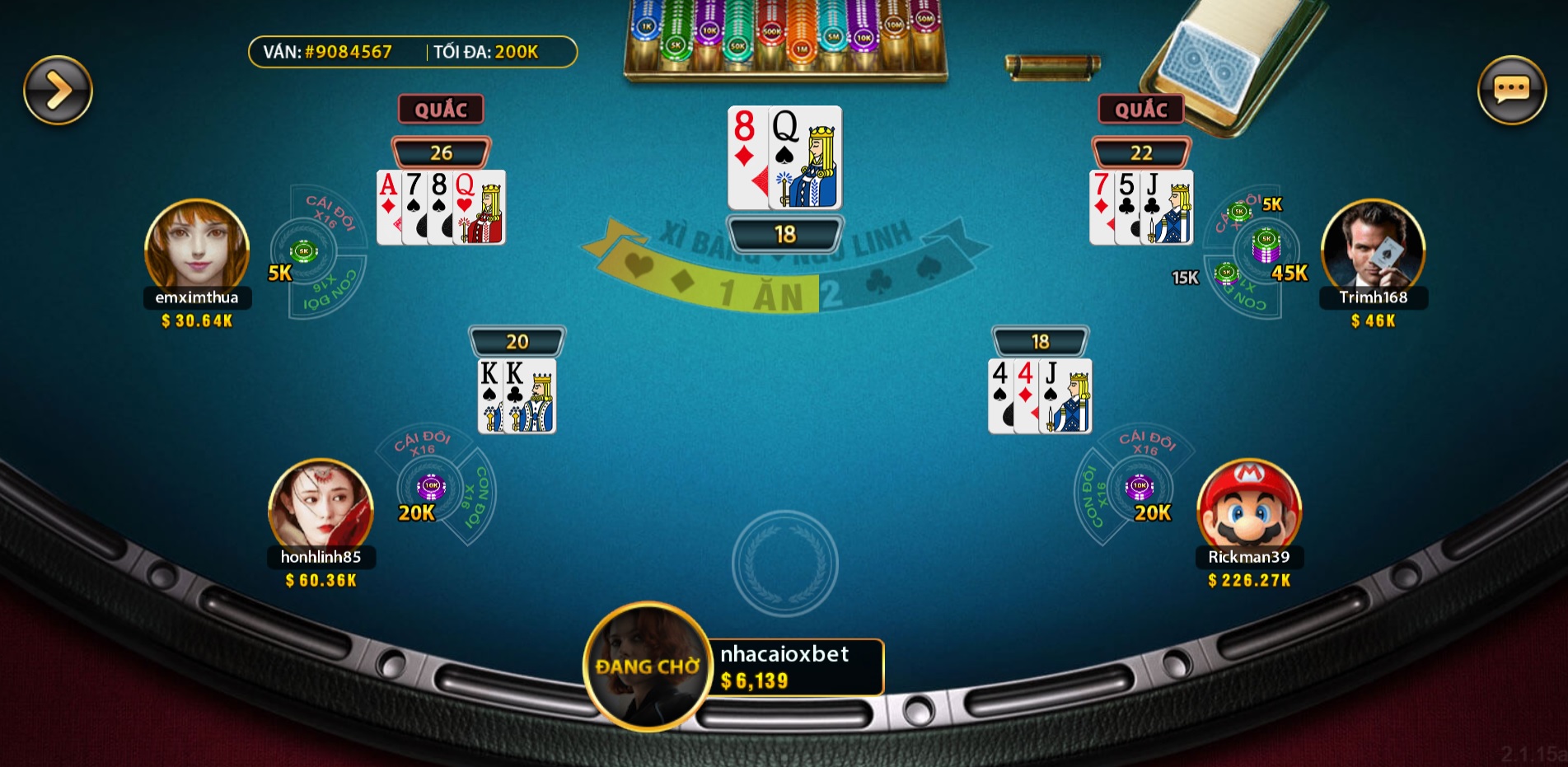 Người chơi sẽ có 15s để đặt cược. Mỗi người được chia 2 lá bài, dựa vào số điểm có được mà người chơi sẽ quyết định có rút thêm bài hay không. Để thắng cuộc thì những lá bài của bạn phải có tổng giá trị các quân bài cộng lại gần với con số 21 nhất so với bài của nhà cái. Nếu ván bài của bạn có tổng vượt quá 21 (Quắc) là thua luôn.