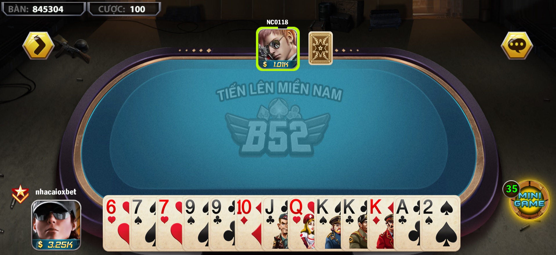 Trò Tiến Lên thì ai cũng biết cách chơi hết rồi. Các bàn chơi tại Oxbet có những mức cược trải dài từ 100 cho đến 50K một ván chơi. Nếu cảm thấy mình vô đối trong trò chơi này thì ngại gì mà không so tài với anh em 3 miền tại Oxbet.