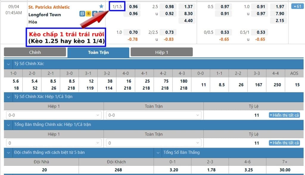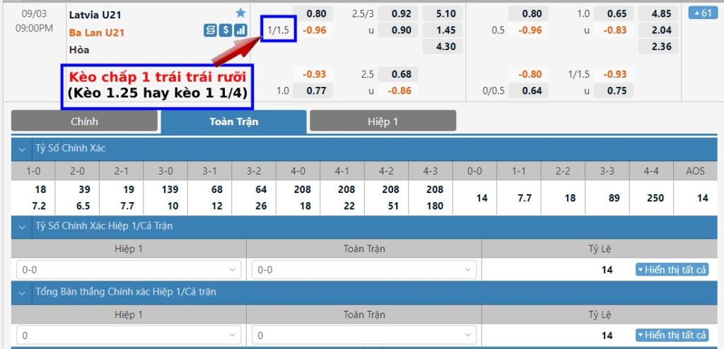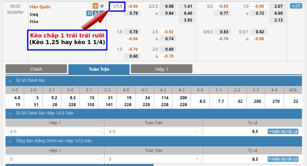 Kèo 1.25, 1 1/4 trái là gì?