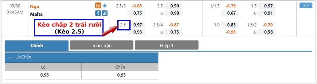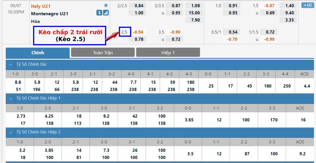 Kèo 2.5 và 2 1/2 trái là gì?