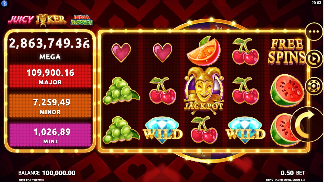 Juicy Joker là game slot hay nhất của Microgaming với 4 mức hũ thưởng. Có 4 mốc nổ hũ trong game với hũ Mega là cao nhất, nhỏ nhất là hũ Mini. Nếu may mắn thì bạn sẽ được nhận 10 lượt quay miễn phí để kiếm thêm tiền khi có 3 biểu tượng Free Spins.
