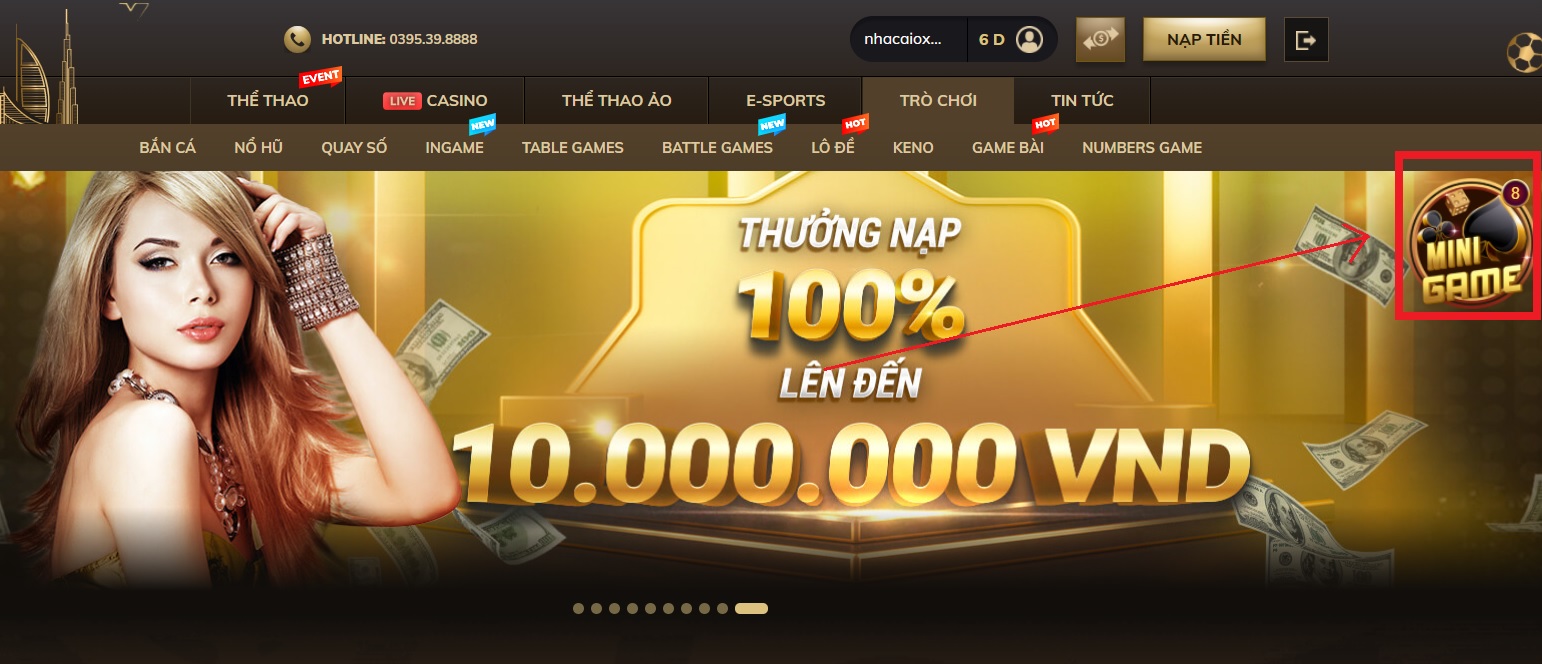 - Bước 1: Sau khi đăng nhập vào trang chủ của nhà cái Oxbet, chọn phần “Mini Game”. Thường thì ô Mini Game này sẽ nằm ở góc bên phải của trang chủ.