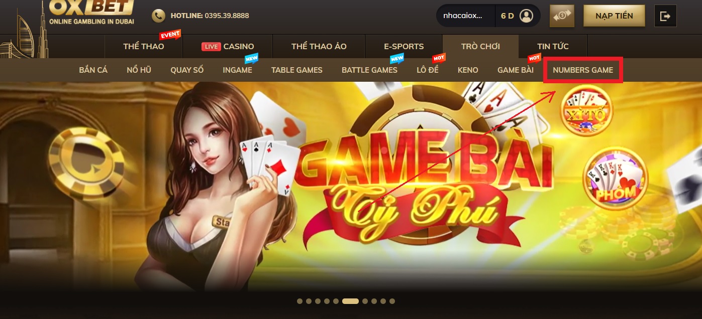 - Bước 1: Sau khi đăng nhập vào trang chủ của nhà cái Oxbet, chọn phần “Numbers Game”.