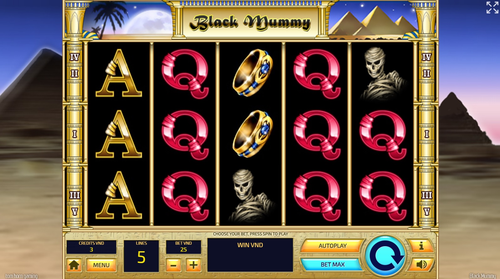 Xác Ướp Đen là một trong những slot game đáng chơi của game. Nếu may mắn gom được 5 biểu tượng xác ướp là bạn sẽ nhận được phần thưởng x100 lần tiền cược.